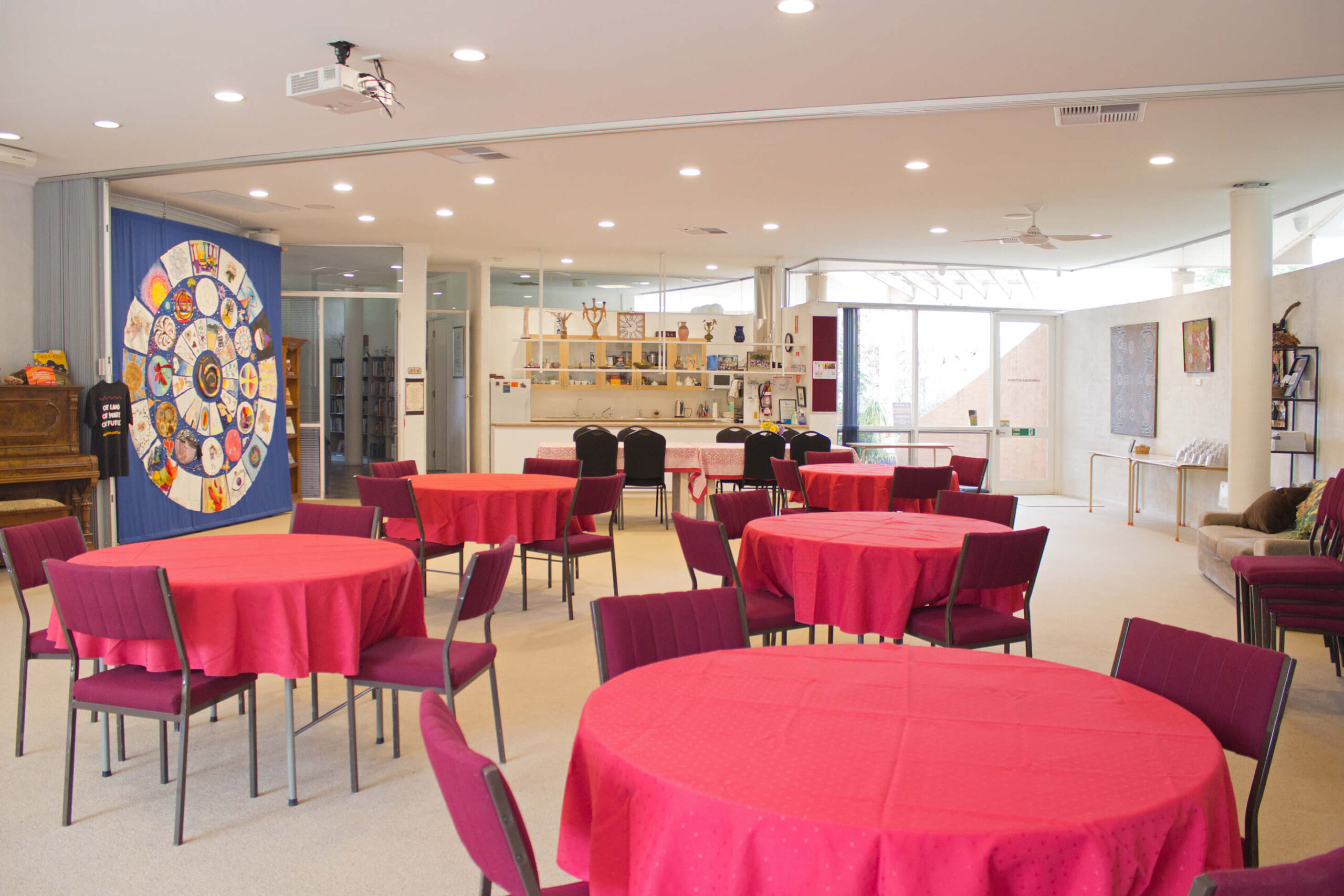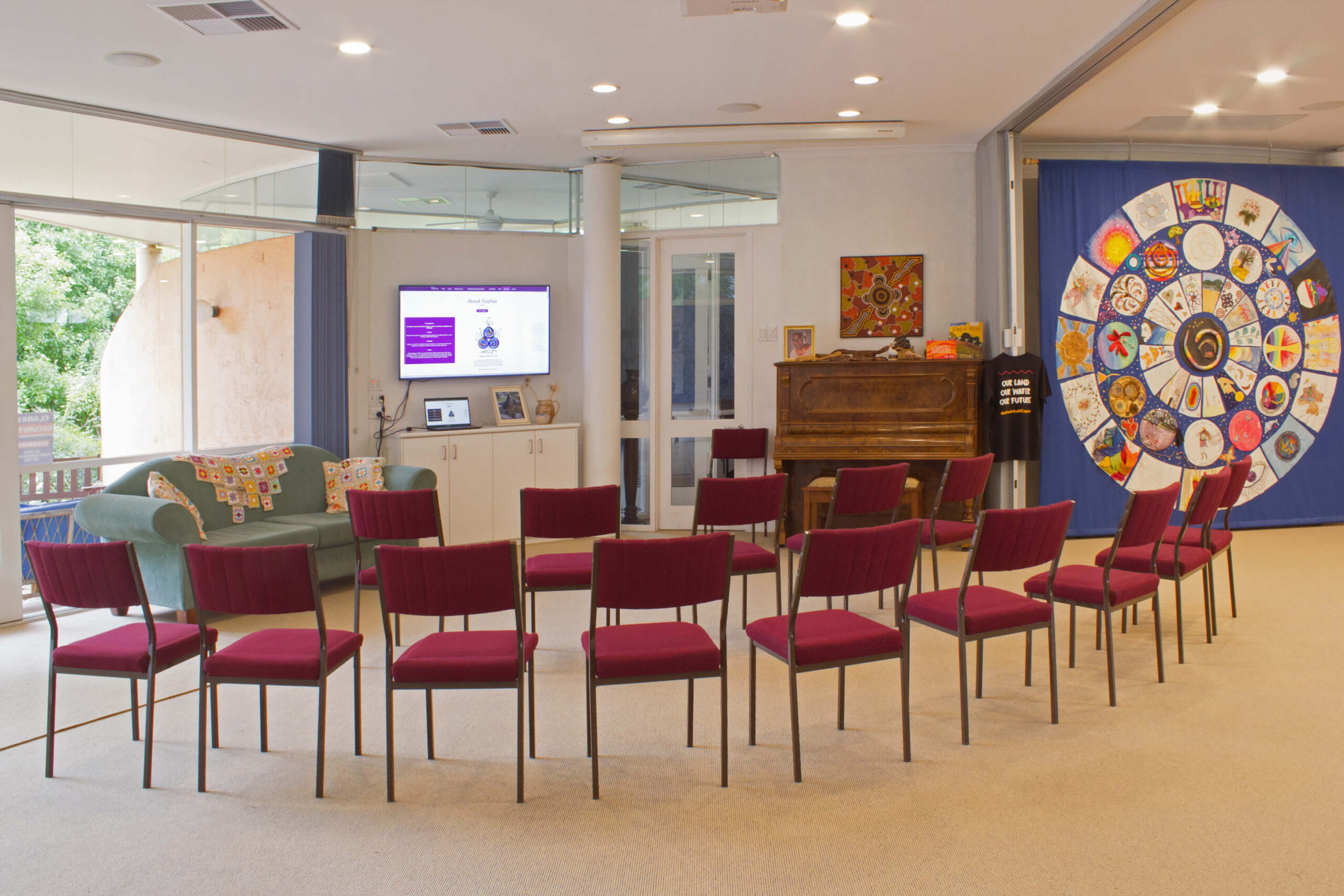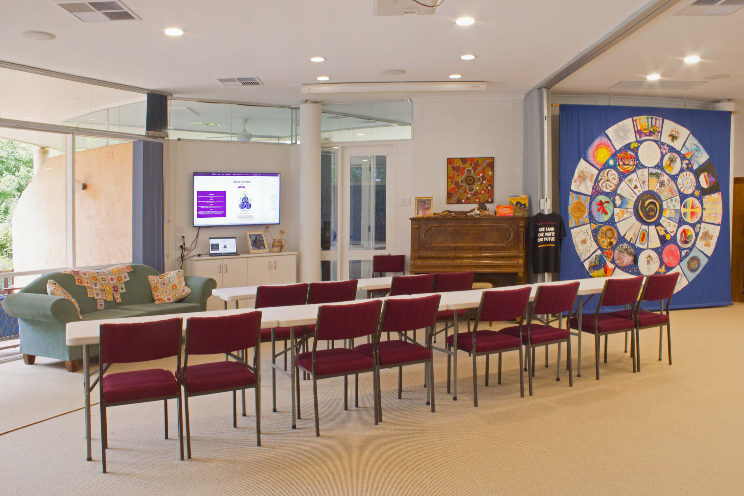 Overlooking the garden and featuring an adjoining fully serviced kitchen, the Sophia Conference Room is a beautiful spacious room that is suitable for 50 theatre style or 30 workshop style. Audiovisual equipment enables PowerPoint presentations, DVD/TV/CD displays and music.
